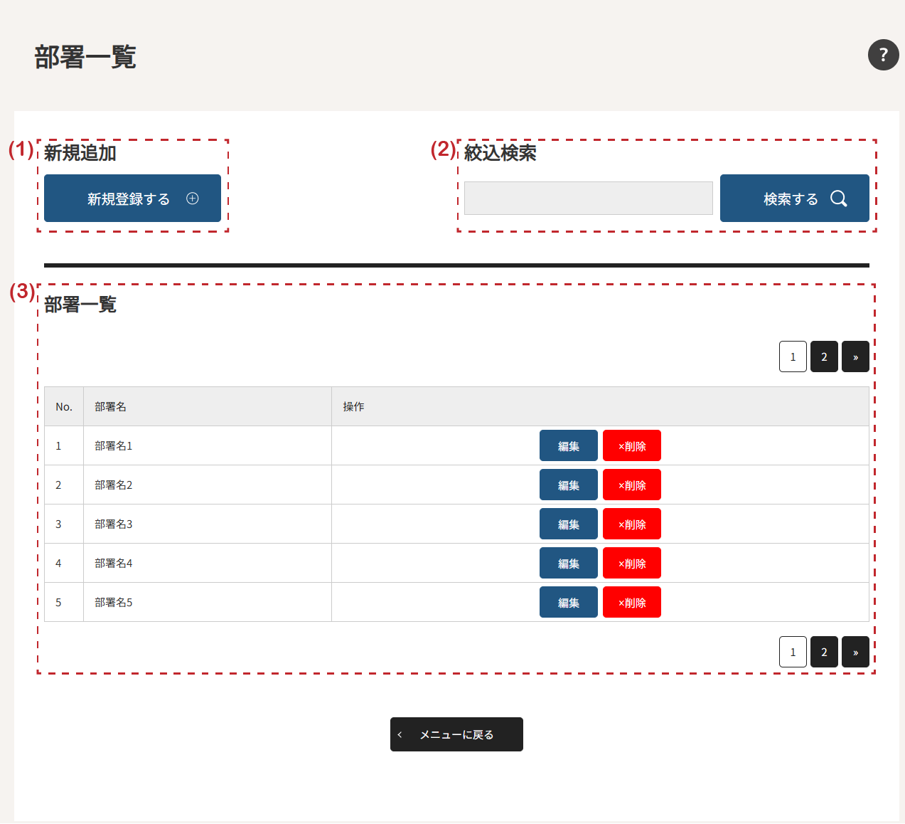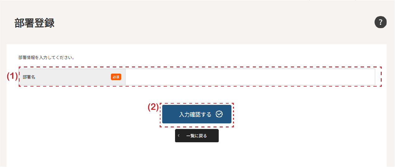 | (1)新規登録する | 部署登録画面に移動します。 |