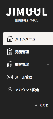 | たたむ | グローバルメニューの幅を狭く表示できます。 もう一度クリックまたはタッチすると、元の幅に戻せます。 |