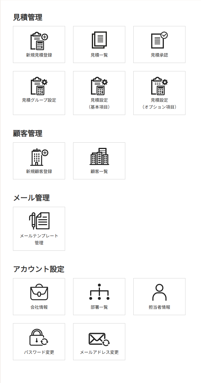 業務メニュー一覧が表示されます。表示内容は、【(2)グローバルメニュー】に記載されている項目と同じです。
